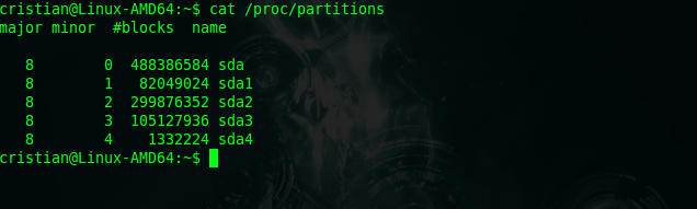que devolverá todas los discos físicos con sus respectivas particiones, como vemos en el siguiente ejemplo: