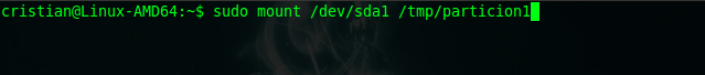 sudo mount /dev/sd[letra][#numero] /tmp/particion1