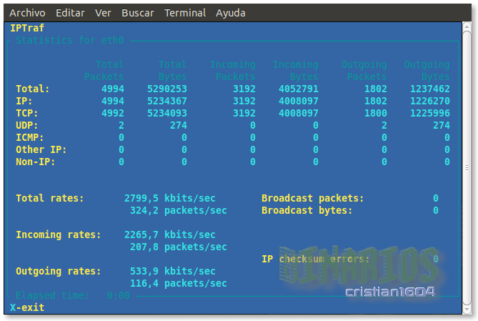 Por ejemplo este es un monitoreo estadístico detallado de la interface seleccionada (en este caso vemos que se trata del dispositivo eth0)
