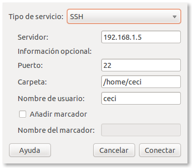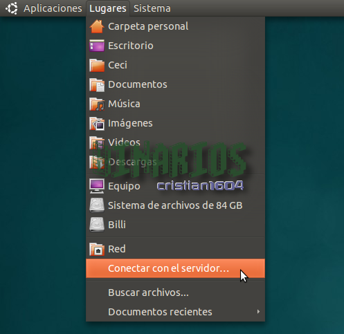 A través del menú Lugares -> Conectar con el servidor... como se ve en la Figura 5.