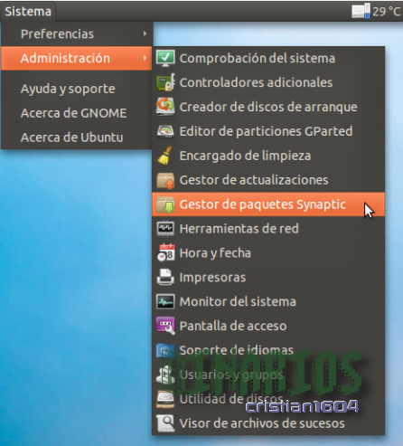 - Abrir Synaptic (Sistema - Administración - Gestor de paquetes Synaptic)