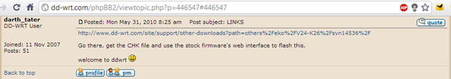 Si el router no funciona, puede haber sido producto de una mala actualización, o en el peor de los casos, el router quedó inutilizado. Pero a no desesperar, que aún quedan esperanzas de recuperarlo de alguna forma. ¿Cómo recuperarse de un una mala actualización? ó el foro de DD-WRT pueden hechar algo de luz sobre el asunto.