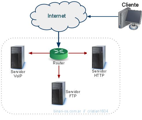 El router será quien derivará todos los paquetes entrantes po un determinado puerto al destino deseado.