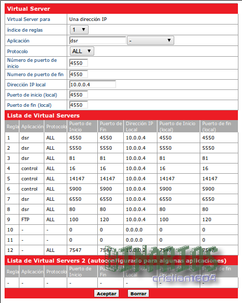 - Una vez abierto los puertos deseados, quedará conformada una tabla, la cual hará que el dispositivo enrute los paquetes entrantes por un determinado puerto a la PC deseada.