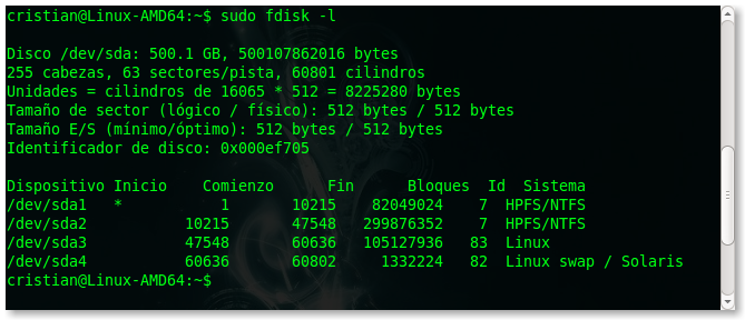 Cuidado aquí. Observarán que /dev/sda no posee ningún número al final. Esto es así porque nos referimos a la unidad en su totalidad y no a una determinada partición.