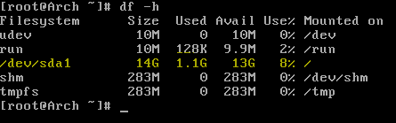 Para ello haremos uso del comando df, el cual es un programa cuya utilidad es reportar el espacio utilizado y el espacio libre en el disco.