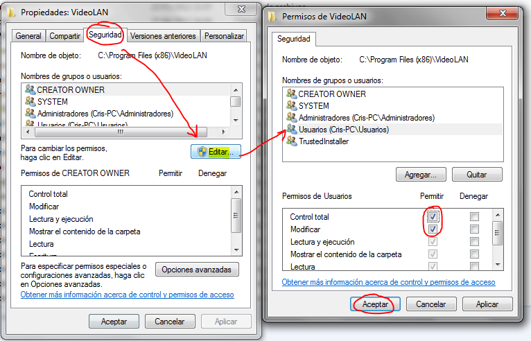 Adicional: Problema de permisos en Windows 7