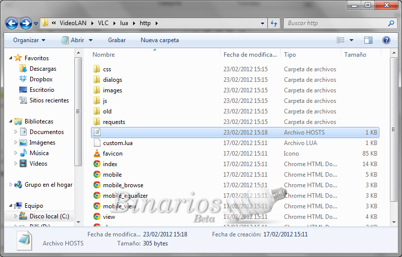 Gracias a Franco, que me hizo dar cuenta de un posible problema que puede surgir al momento de querer guardar los cambios en el archivo .hosts. Para solucionar este inconveniente, será necesario cambiar los permisos de escritura en la carpeta donde está instalado VLC.