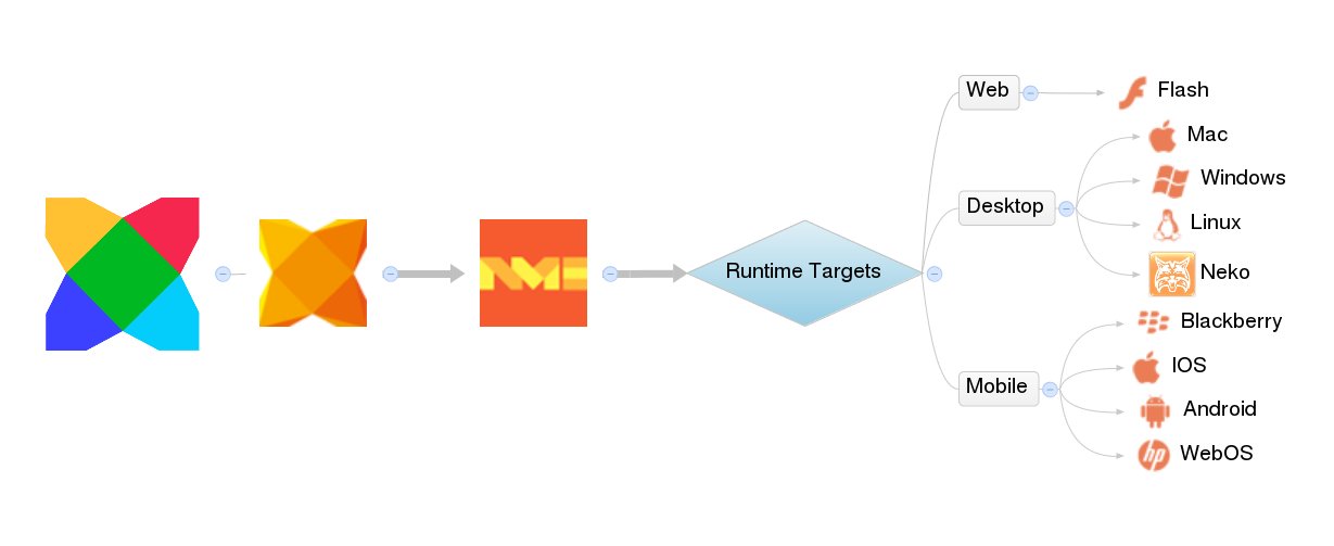 Se trata de un lenguaje de programación open source llamado Haxe, el cual emplea Flixel como plataforma para desarrollar videojuegos y librerías de NME framework para dotarlo de esta característica tan importante que es poder exportar el mismo juego desarrollado a diferentes plataformas.